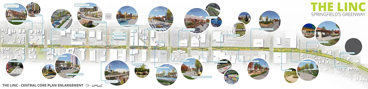 The city’s vision for the Third Street corridor upon completion of the rail consolidation is a linear development that would provide a north-south path through Springfield for pedestrians and cyclists. The city’s primary goals for the corridor are implementation, a multiuse trail, safety, connectivity and destination. The city also envisions redevelopment opportunities in the spaces next to the path.